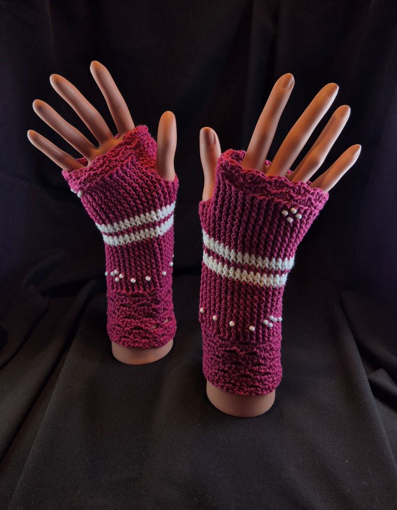 Stulpen Himbeer Weiss mit Perlen