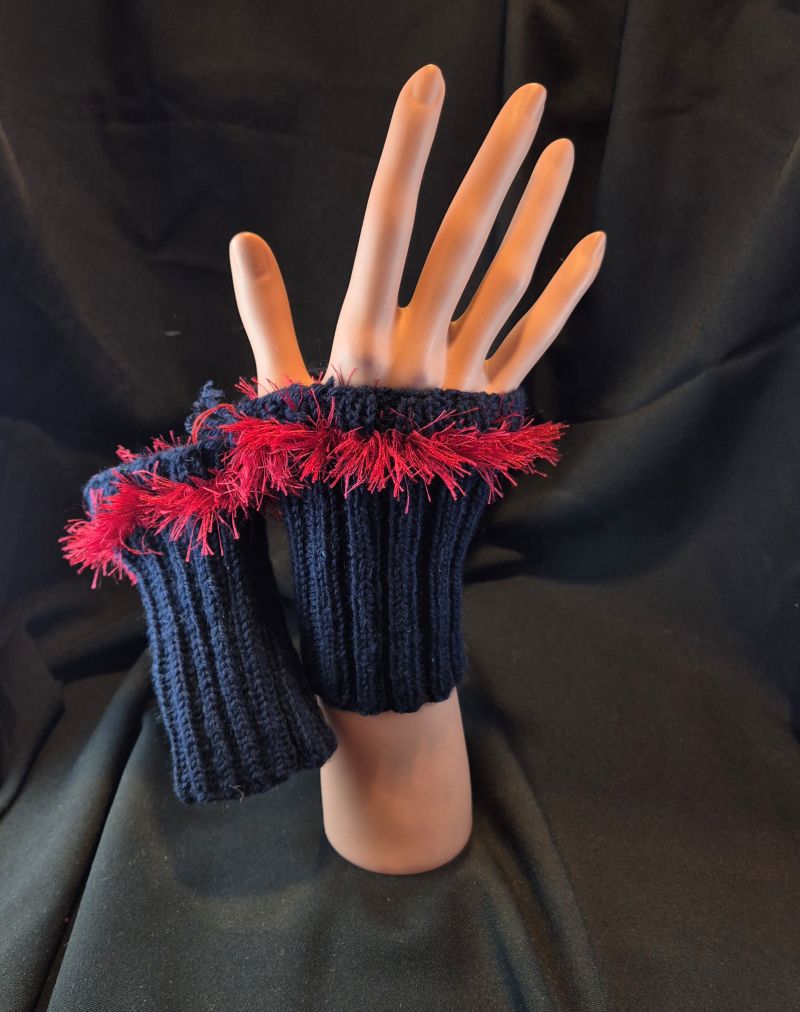 Stulpen Dunkelblau mit Flausch Rot