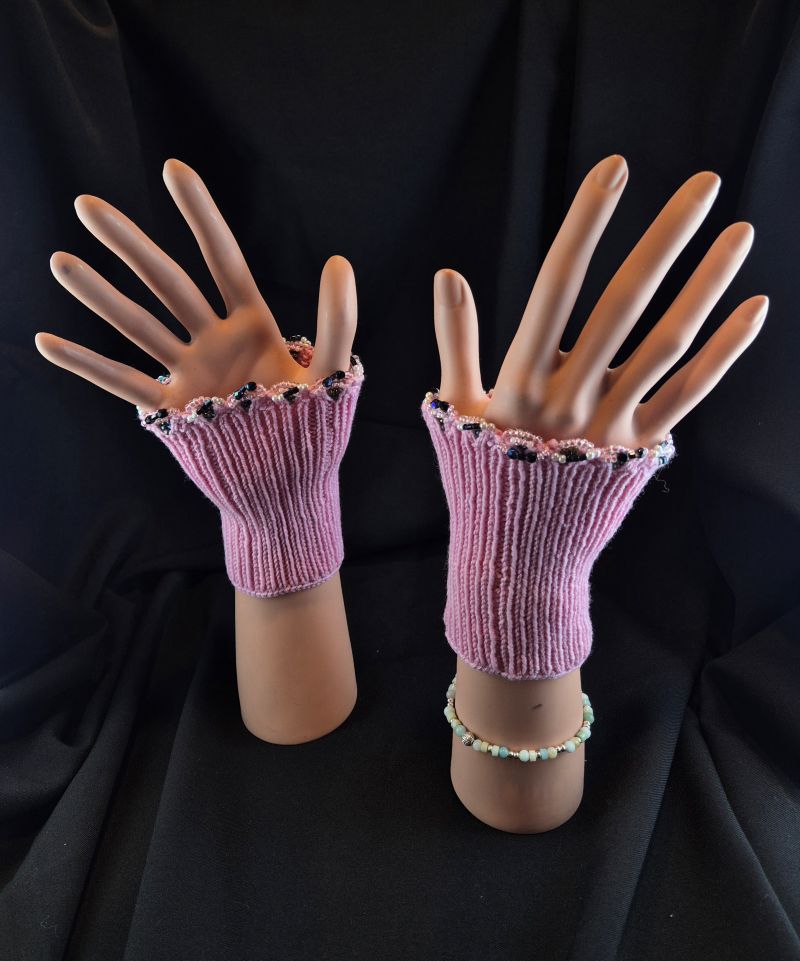 Die Stulpen sind bei der Fingeröffnung mit Glasperlen besetzt.