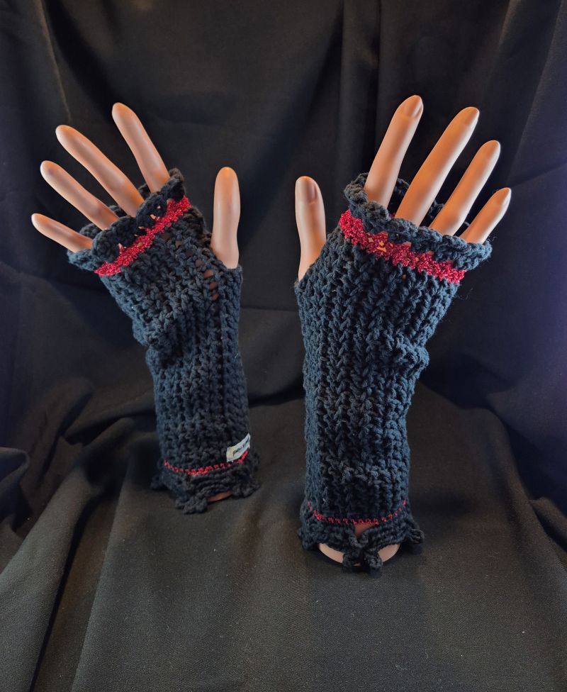 Diese handgestrickten Stulpen sind aus 100% Baumwolle gehäkelt.