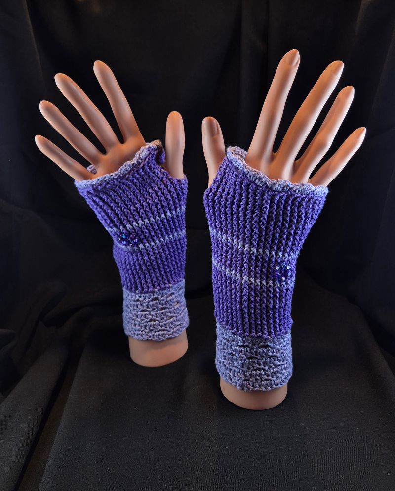 Diese handgestrickten Stulpen sind aus 100% Baumwolle gehäkelt.